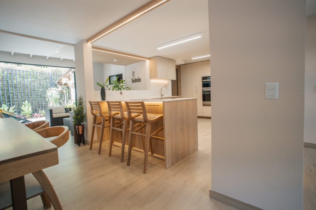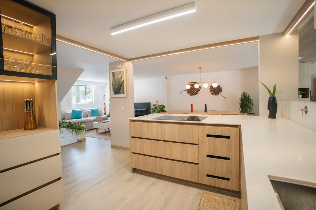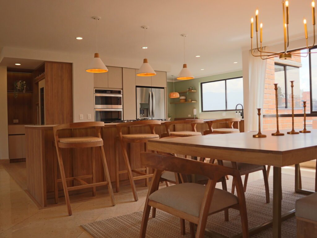 Durante la obra trabajamos con supervisión constante, control de calidad y cronogramas realistas. Coordinamos cada detalle —obra civil, instalaciones eléctricas e hidráulicas, carpintería, enchapes, iluminación y acabados— para garantizar coherencia estética y precisión técnica.